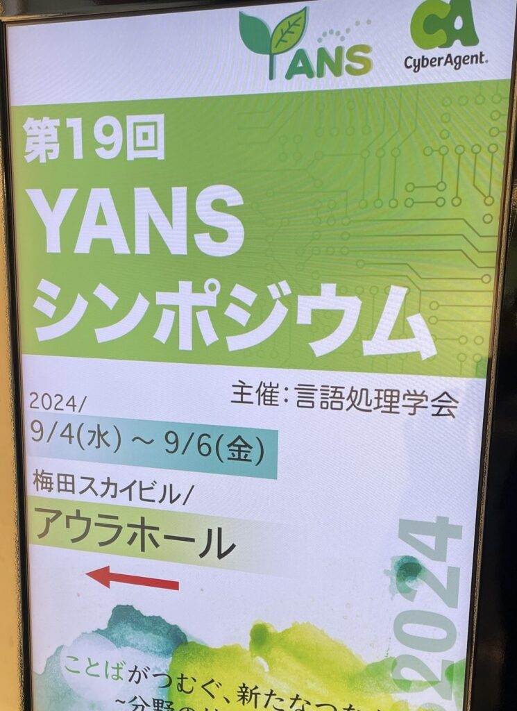 こんにちは、同志社大学 知的機構研究室の嘉本と申します。2024年9月4日~2024年9月6日に開催された第19回YANSシンポジウム(YANS2024)に参加し、ポスターセッションにて発表をしましたので報告いたします。 今年のYANSは、梅田スカイビルで行われました。現地での参加であるため、特に長距離移動はせず、自宅から会場に直接向かうことがで... -